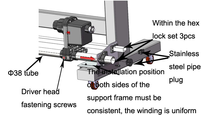 The square, round tube through the power head (pictured above), according to the direction of the arrow from the locking bracket fastening ring to wear, with 2.5# respectively M5 inner six angle wrench set screw locking, square tube.