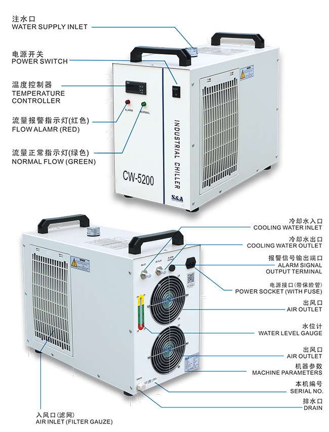The installation of S&A CW-5200 water chiller