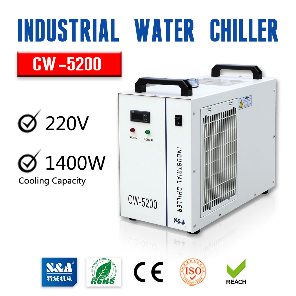 US Stock, S&A CW-5200DG industrial water chiller (AC 1P 110V 60Hz) for One 130W or 150W CO2 Glass Laser Tube Cooling, 0.93HP