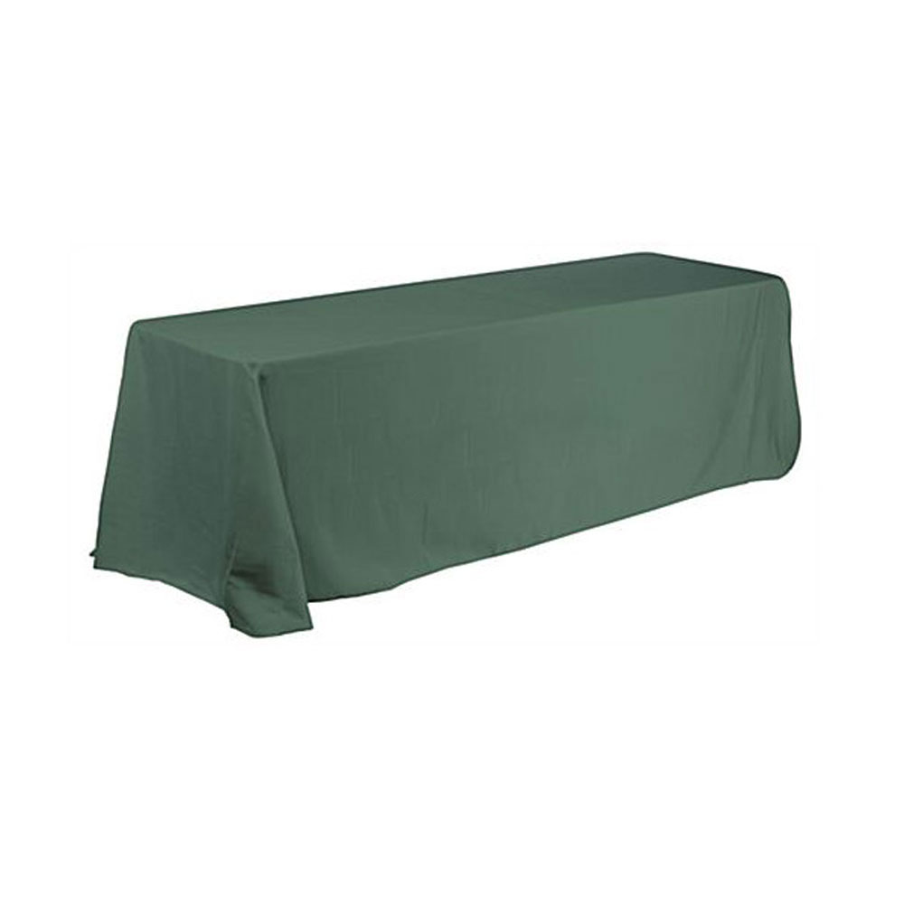 This stretch fabric table cloth is four-sided and has right corners that fit perfectly on any 8' rectangular table. The one-piece stretch fabric table cloth drapes within 1" of the floor on all four sides of the tables. If you are displaying any brochures, samples and giveaways on a table, you may need this tablecloth to hide the legs of your display tables.