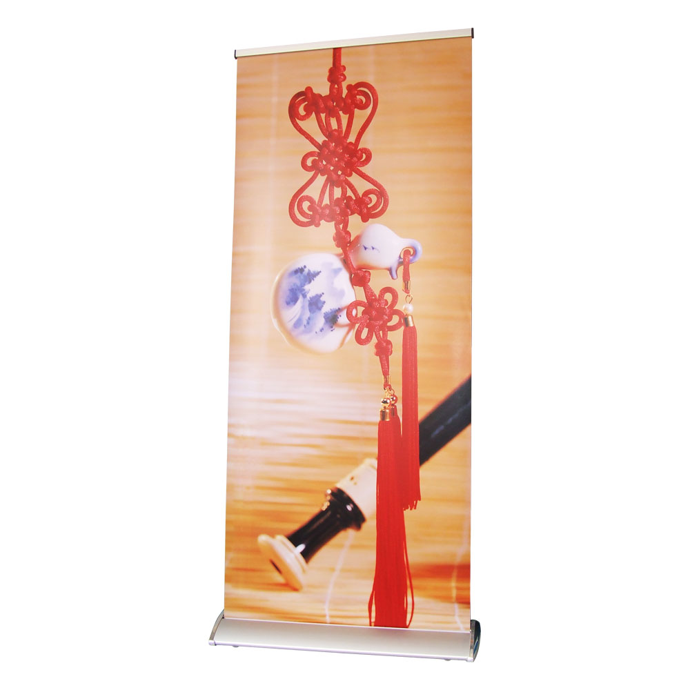 This is a high quality broad base Roll Up Banner Stand with chroming end caps.