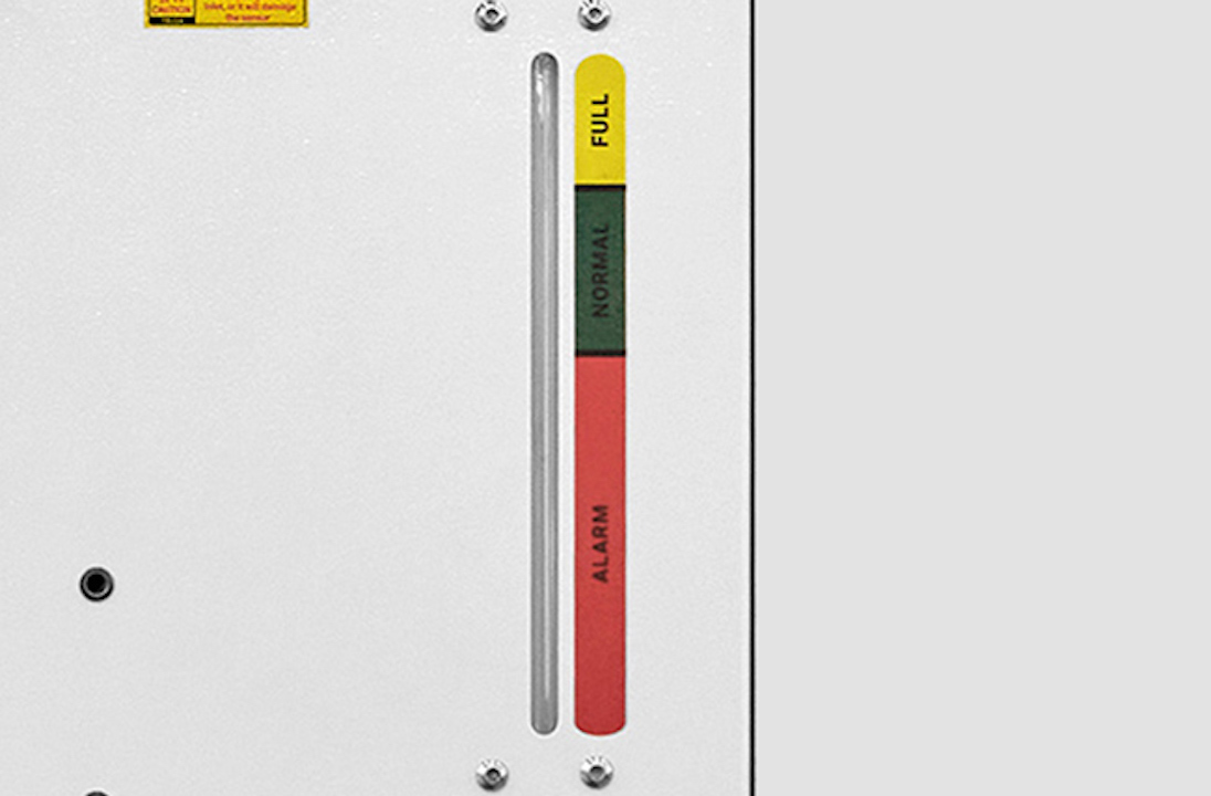 The water level indicator has 3 color areas - yellow, green and red.