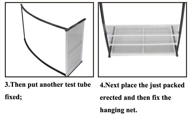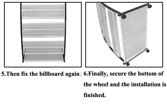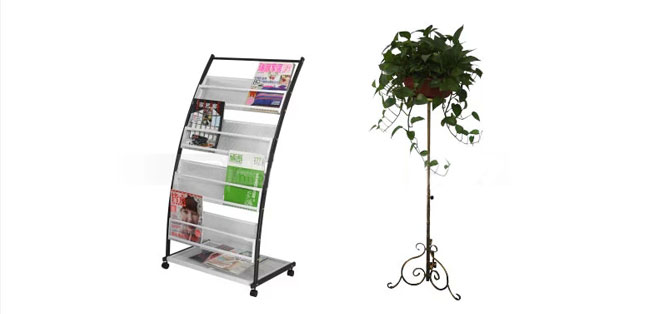 3) The shelf can be fitted with different hooks, hanging baskets. The heavy-duty standing posts is good looking and anti-rust with fine powder-coating.