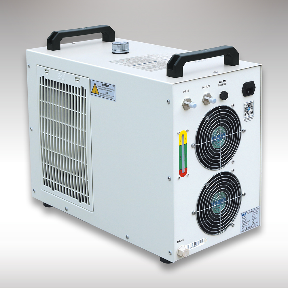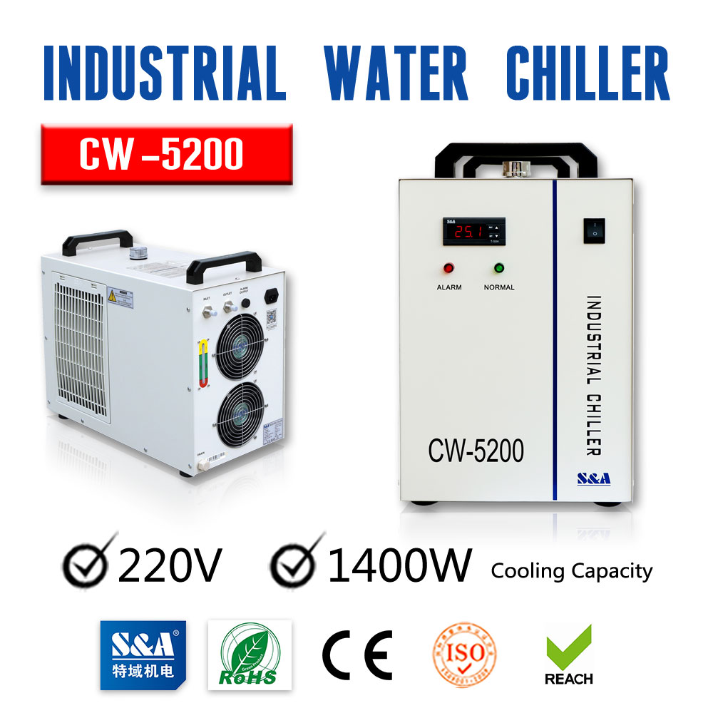 S&A CW-5200BG industrial water chiller (AC 1P 220V 60Hz) for a Single 130W or 150W CO2 Glass Laser Tube Cooling, 0.68HP