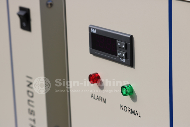 (1) Power switch turned on, the circulation pump of the chiller starts working. The first time of operating may cause more bubbles in the pipe leading to a flow alarming occasionally, but running for a few minutes later, it will go back to normal.