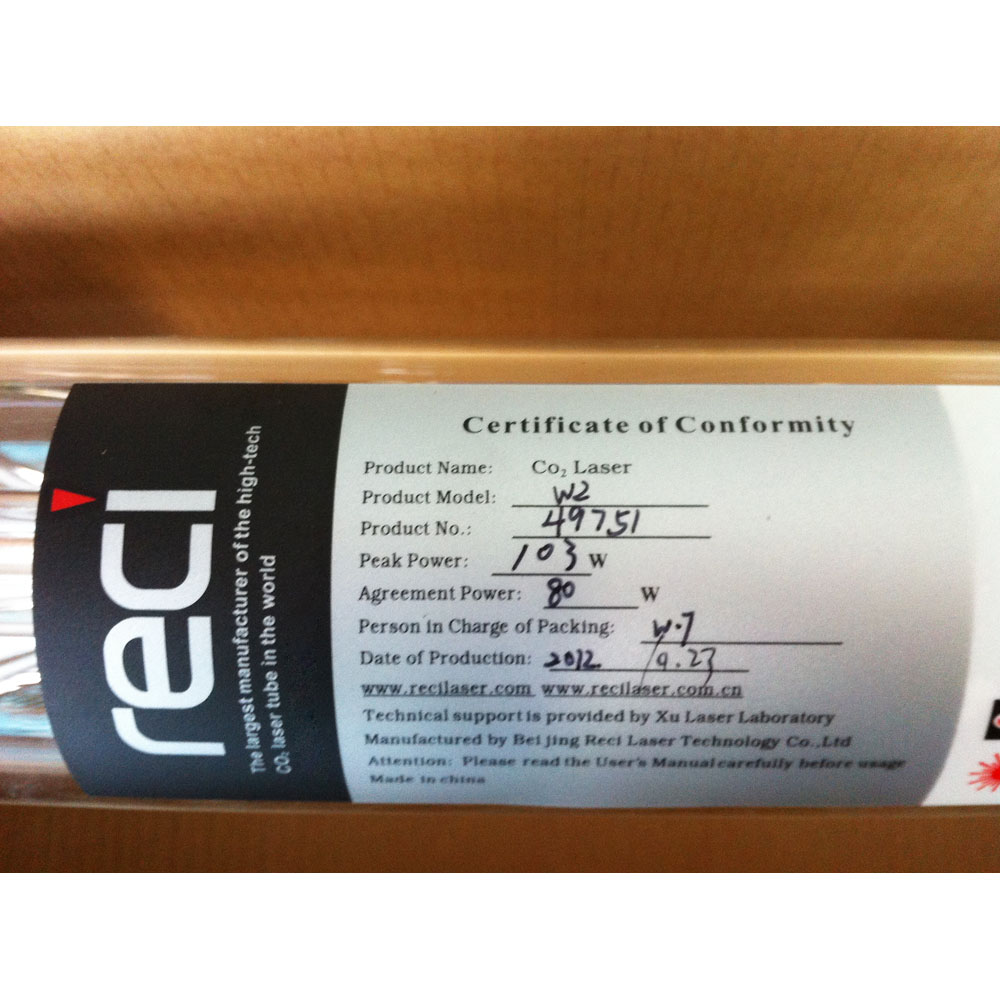 RECI CO2 Laser Tube 90W-100W W2 / S2, Water Cooling for the Laser Engraver, 10000hr Service Life