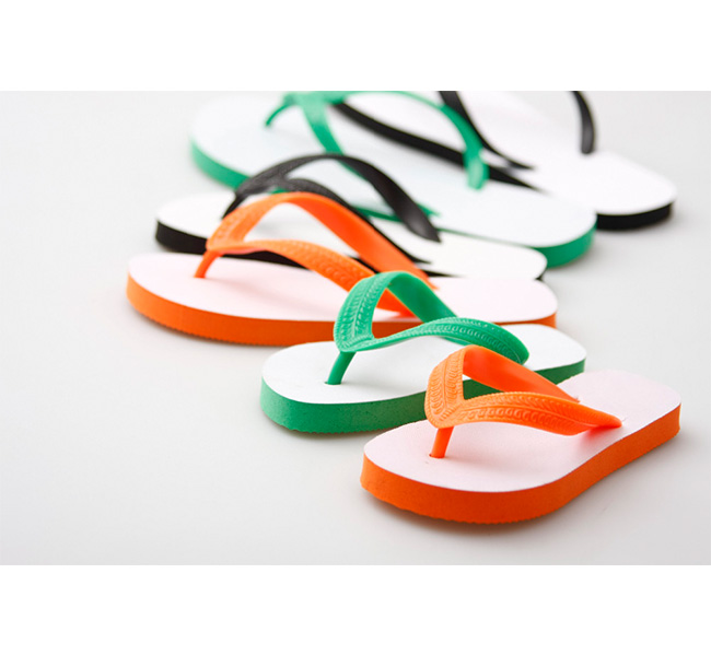The classic-styled flip-flop designs which have a die-cut debossed sole that leaves the impression of your logo in the sand.