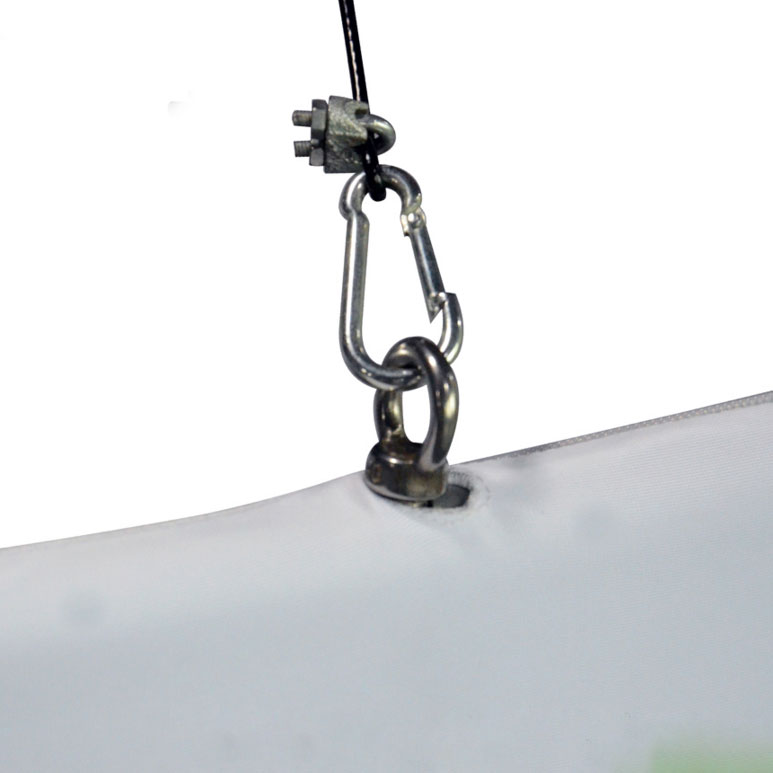 The 12ft Curved Square Hanging Banner is a must have if you want to get noticed. These extra large hanging banners are produced from high quality fabric and enables your booth to be seen from practically anywhere at your trade show.
