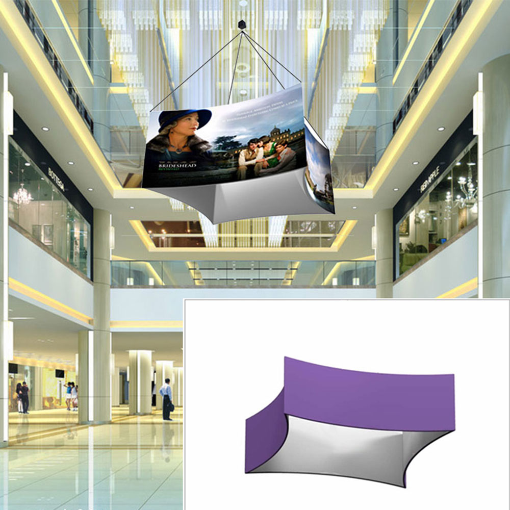 Curved Square Tension Fabric Hanging Sign Tradeshow Display with Graphic Upload Artwork