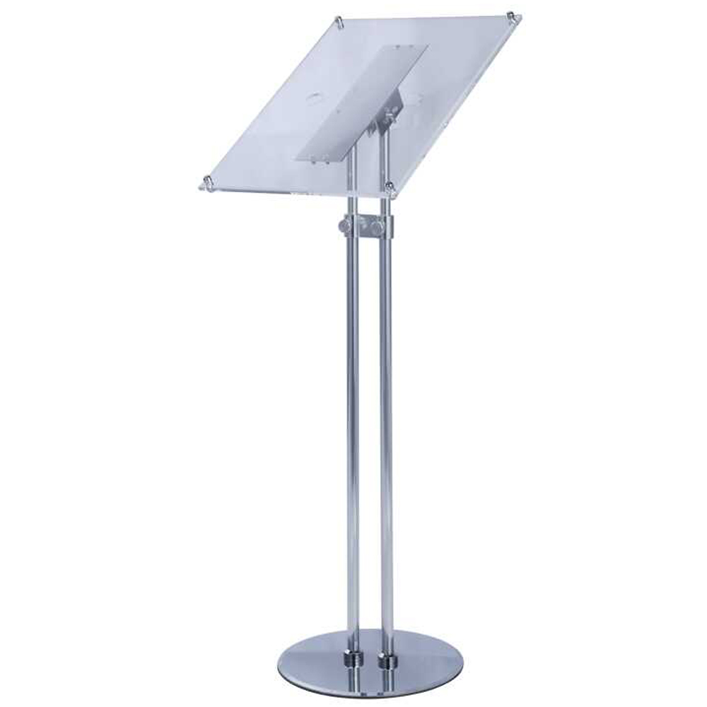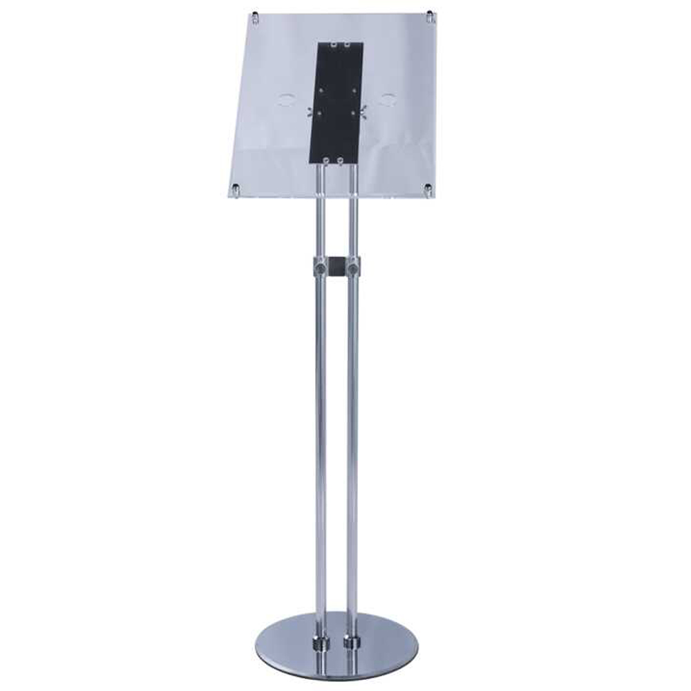 The classic adjustable pedestal sign stand has been updated for a contemporary, upscale look and feel! It is designed with form and function in mind, these stands are a great addition to any lobby. It is easy to change the viewing angles, suitable for both vertical and horizontal use. It is the perfect way to display graphics such as posters, menus, direction signs, etc.
