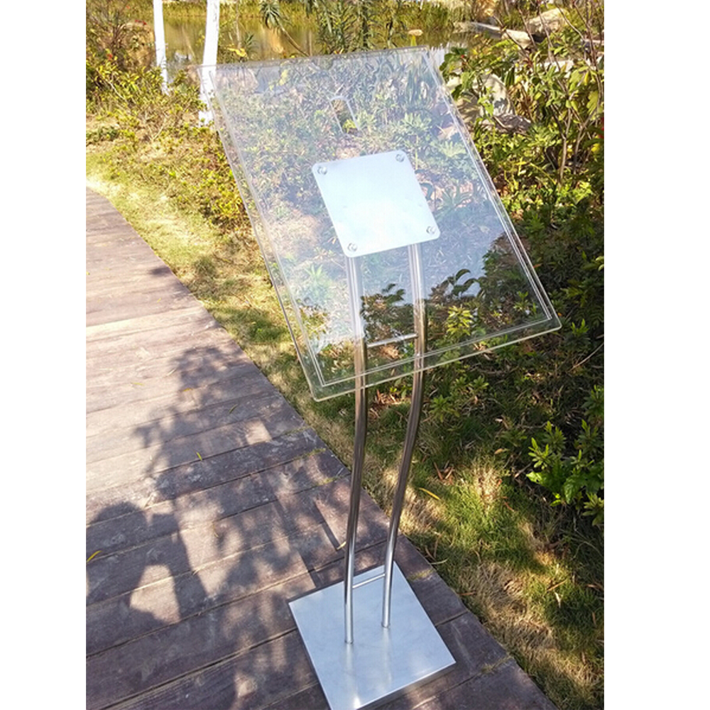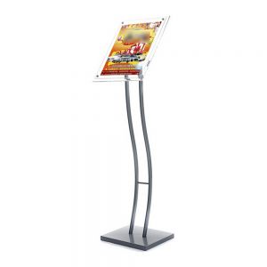 The classic adjustable pedestal sign stand has been updated for a contemporary, upscale look and feel! It is designed with form and function in mind, these stands are a great addition to any lobby. It is easy to change the viewing to vertical or horizontal, suitable for both vertical and horizontal use. It is the perfect way to display graphics such as posters, menus, direction signs, etc.