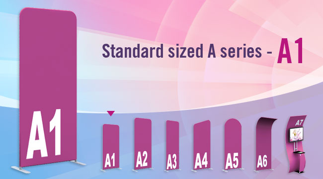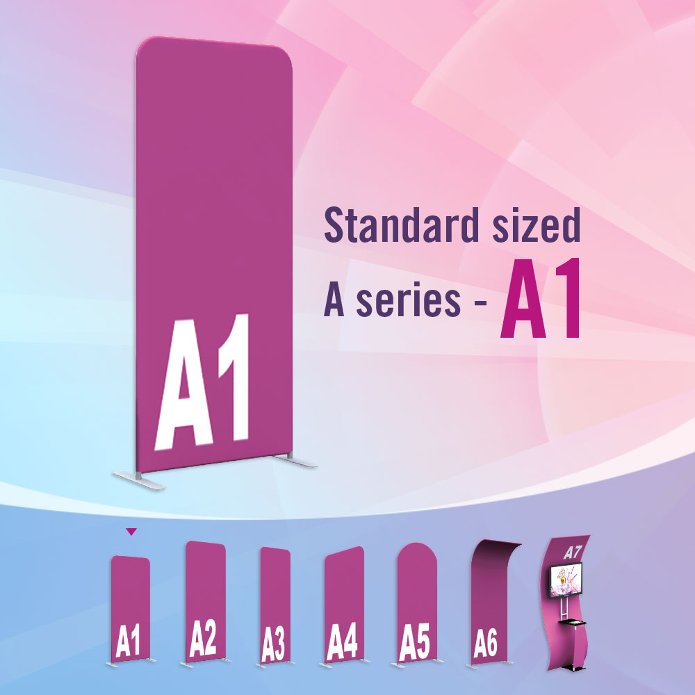 Standard sized A series Fabric Banners feature unique angles and shapes, are portable and easy to assemble. Choose from different frame shapes and connect to design your own combinations.