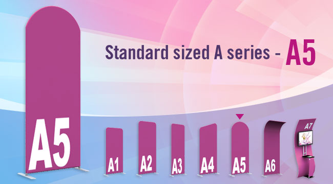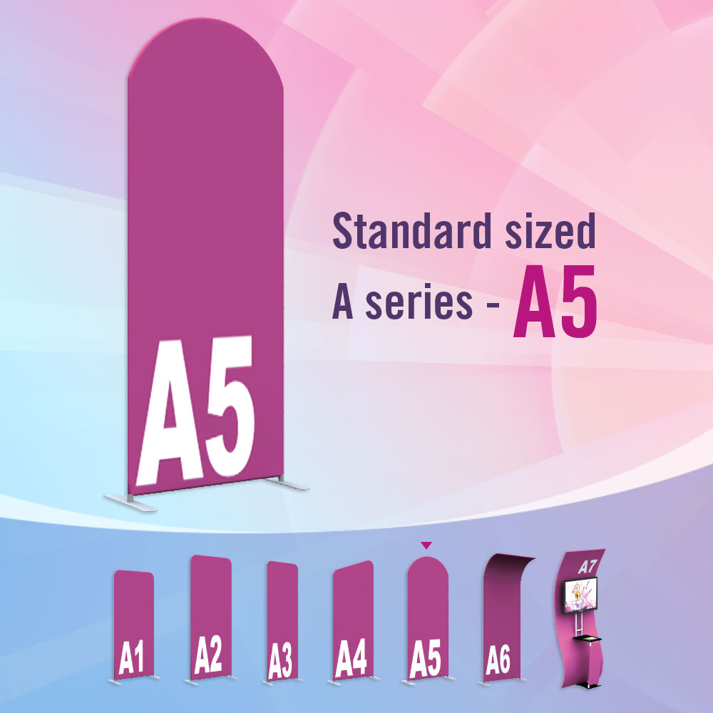 Standard sized A series Fabric Banners feature unique angles and shapes, are portable and easy to assemble. Choose from different frame shapes and connect to design your own combinations.