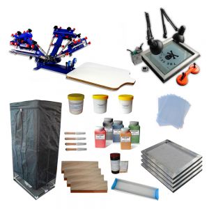 4 Color Screen Printing Kit Drying Cabinet / UV Exposure / INK Adjustable Press
