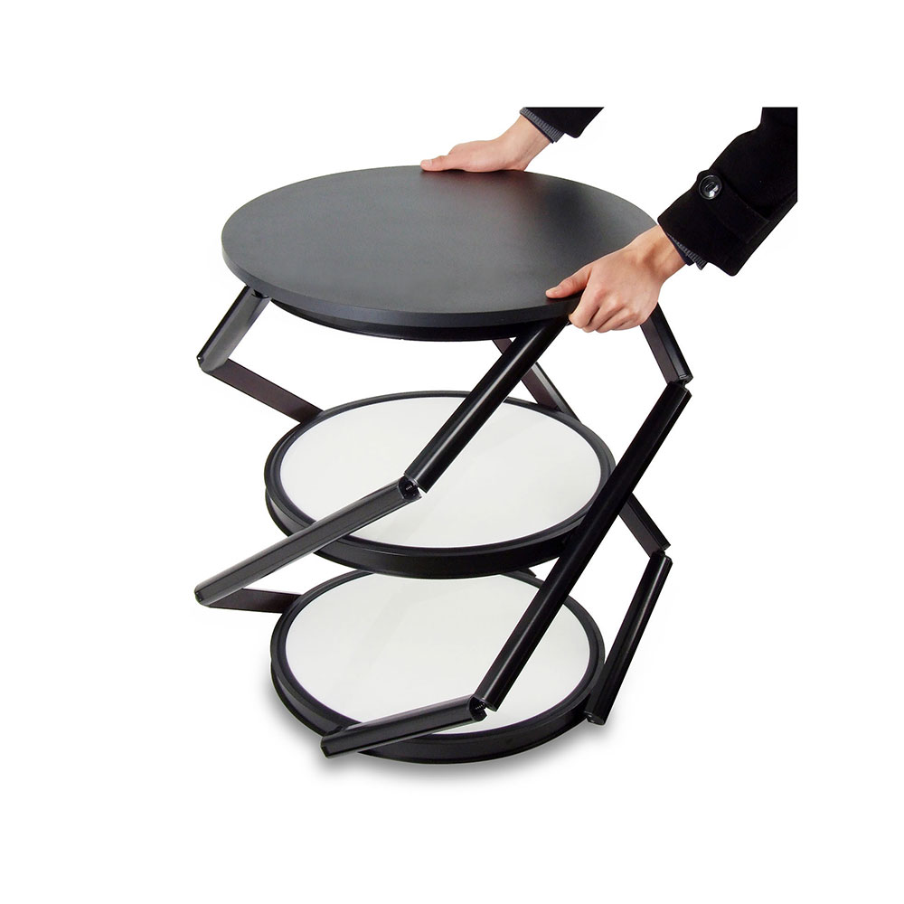 Aluminum folding twister tower are very effective display case system. One-minute quick installation and removal, convenient and quick. They prove very portable and fully collapsible for easy transportation between events. The clear panels will allow booth visitors to still see within the twister tower, or you can also leave out the panels to get the products in shelves directly. And the panels are removable, you can set it DIY.
