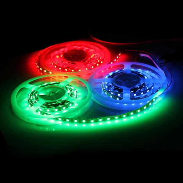 Ving UL Waterproof flexible LED light strip with 1-chip 5050 SMD LEDs. IP Rating: IP65. Available in 5 meter (197 in), 1 meter (39 in) and 1/2 meter (19.5 in) lengths. Waterproof flexible light strips with adhesive backing, can be cut into 3-LED segments. 12VDC operation.
