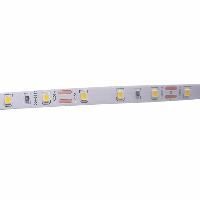 Ving UL Non-waterproof flexible LED light strip with 1-chip 2835 SMD LEDs. IP Rating: IP20. Available in 5 meter (197 in), 1 meter (39 in) and 1/2 meter (19.5 in) lengths. Waterproof flexible light strips with adhesive backing, can be cut into 3-LED segments. 12VDC operation.