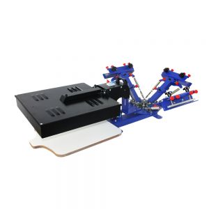 Comparing with previous 3 color 1 station printer, this new type machine has a function of micro-adjust. If you want to do color matching, you can use those small red handles to move the screen frame right or left slightly. It will be a good choice for colorful printing.