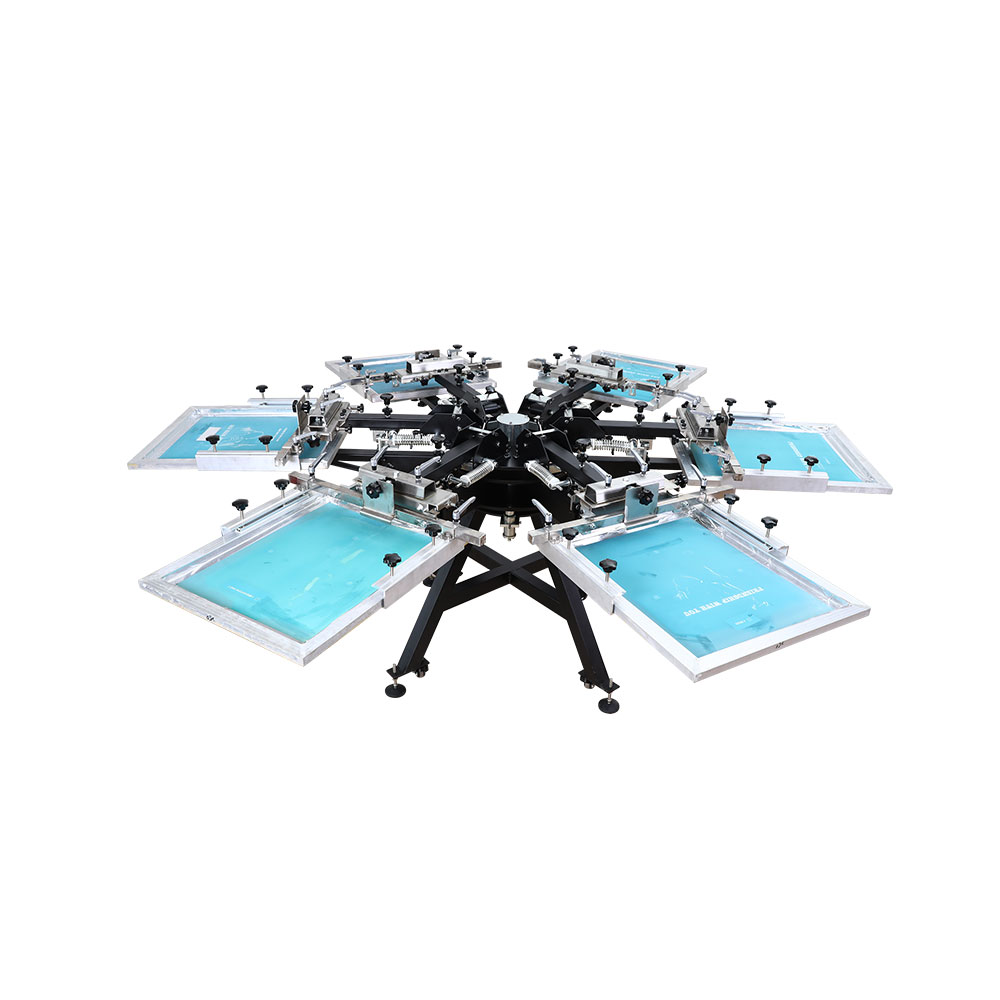 CALCA Design High Precision Rotary Manual 6 color 6 Workstation Screen Printing Machine with Micro Registration