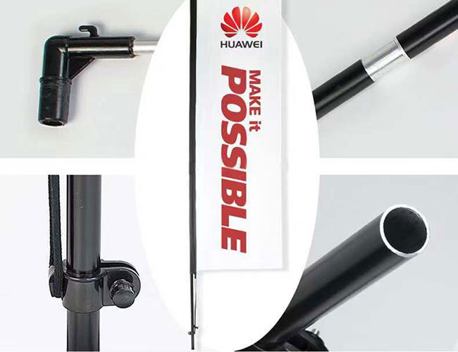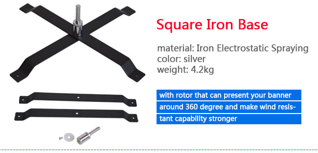 The poles made up of aluminum alloy pole and the base that can be quickly removed from `the` base to bring the unit it at the close of each business day. The water bag can be placed over the cross base to help stabilize this unit during light winds. It is supplied that fits over the base to keep it stable.