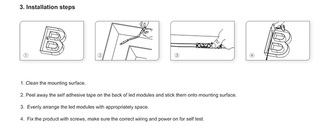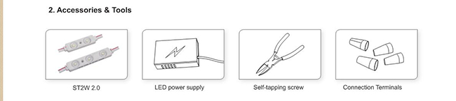 • Make sure the correct connection of positive and negative poles between products and power supply. Otherwise, the light will not be on.