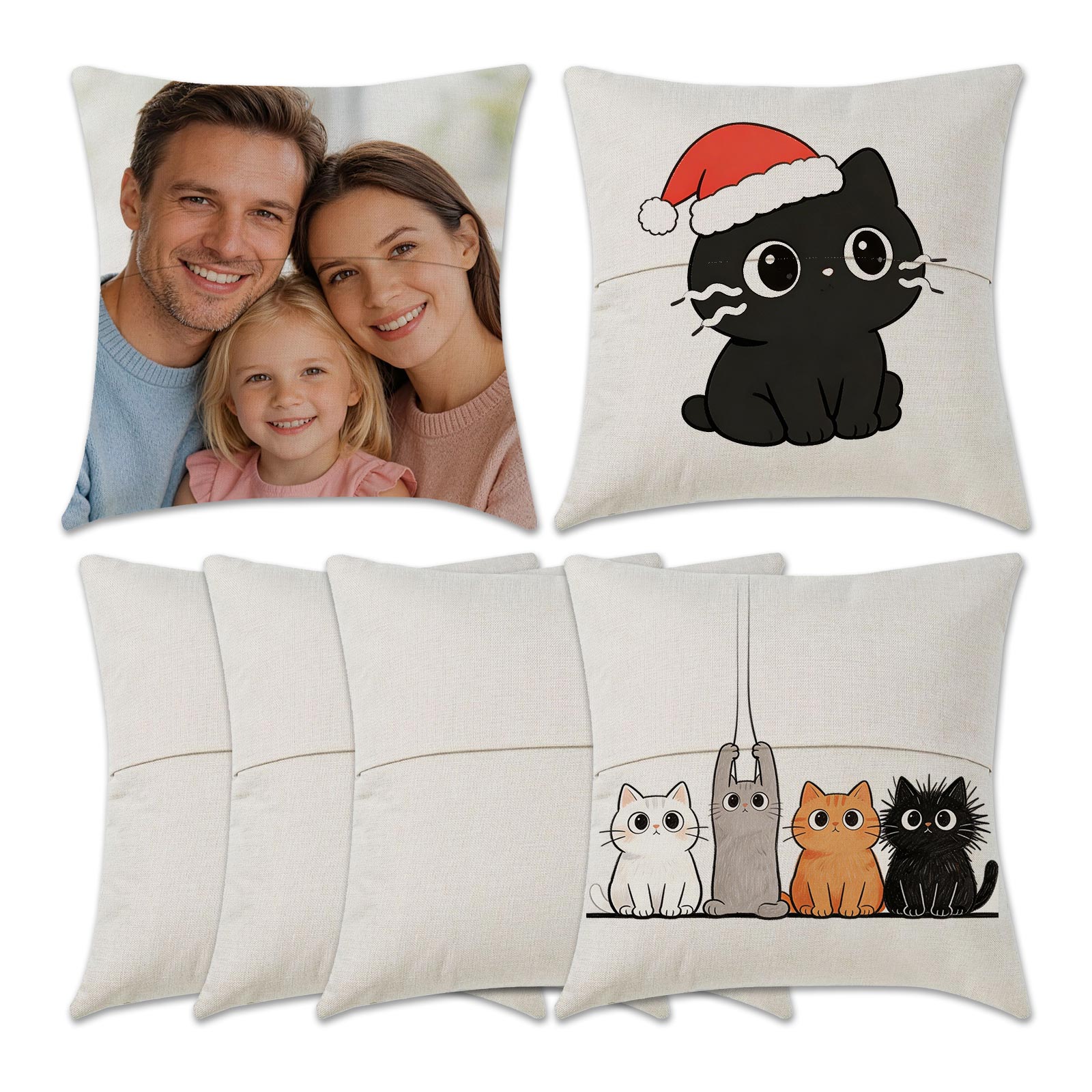 CALCA 4PCS 15.75"x15.75" Blank Linen Pocket Pillowcase Cushion Covers - Sublimation & DTF Printable for Custom Designs