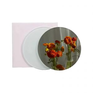 185℃ (365℉) & 3 mins for heat presses (For single sided heat press machine, place the glass coaster white printable side down on image (image face up), and secure with thermal tape to make sure better sublimation finishing.)