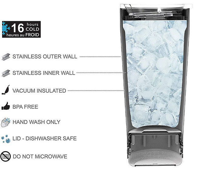 This kind of tumblers with wireless speaker helps keep drinks cold for up to 16 hours and prevents condensation.