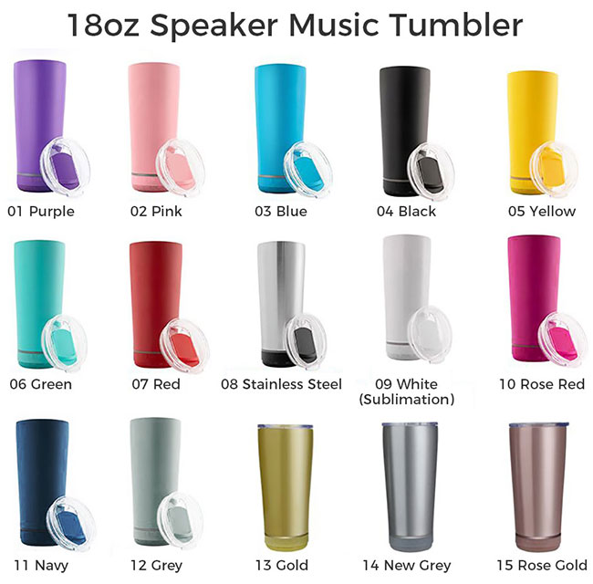 18oz Speaker Tumbler Wireless Tumbler Sublimation White Blank Smart Tumbler With Speaker USB Charging, With slide lid