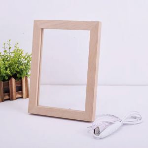 US Stock 6sets/pack CALCA Wood Photo Frame 3D LED Photo Frame kit (Wooden photo frame + blank acrylic board) DIY gift, Wholesale