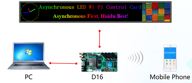 HD-D16 is a smallest video control card for full color LED screen, the maximum load capacity is 40,960 pixels, the widest is 640 pixels, the highest is 128 pixels, come with Wi-Fi module, mobile APP wireless management, it can support optional 4G module, Internet remote cluster control, it used extensively for lintel led screens, car screen and full color small size led screens.