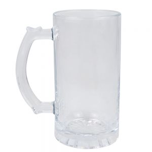 Clear glass beer steins are classic and sturdy, made from thick transparent glass prepared for sublimation printing. The transparency of the material will give any colored design a subtle effect that can change depending on what liquid is inside the stein. Restaurants, bars and private parties can all benefit from custom beer steins!