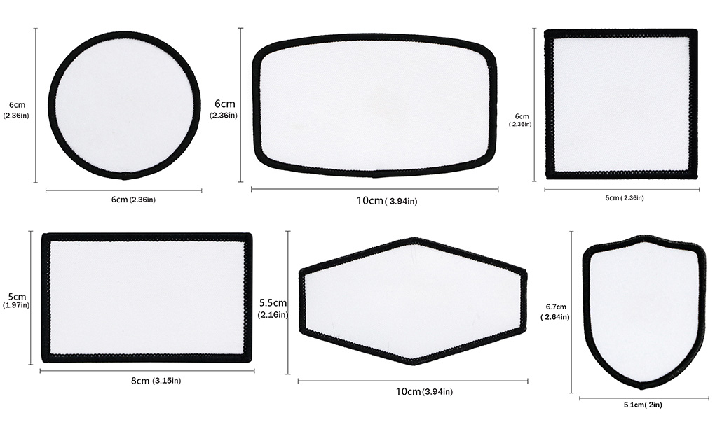 50PCS Sublimation Patches Fabric Iron-on Blank Stickers with Black Frame - Versatile for Caps, Clothes, Shoes, Bags, Backpacks & Uniforms