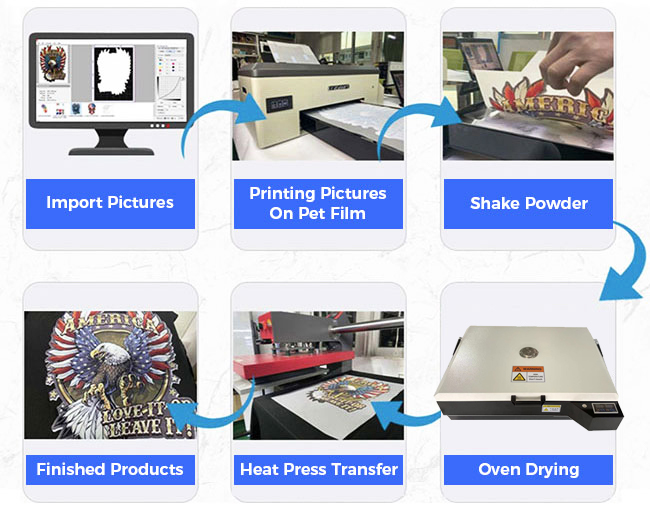 Settings are Preset! Tested with CALCA DTF Supplies. Small footprints and easy to operate. Specifications: