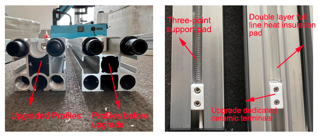 2. The three-point heating tube support pad is upgraded to a "double-layer full-line heat insulation pad" (picture 2). Advantages: energy saving and high efficiency, improve the overall.