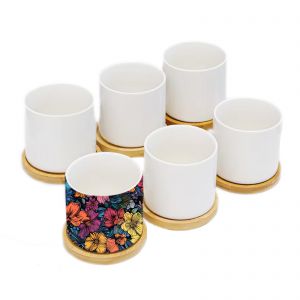 CALCA 6OZ Sublimation Flowerpot 6PCS Garden Plant Ceramic Blank Sublimation Flower Pot With Bamboo Tray Base