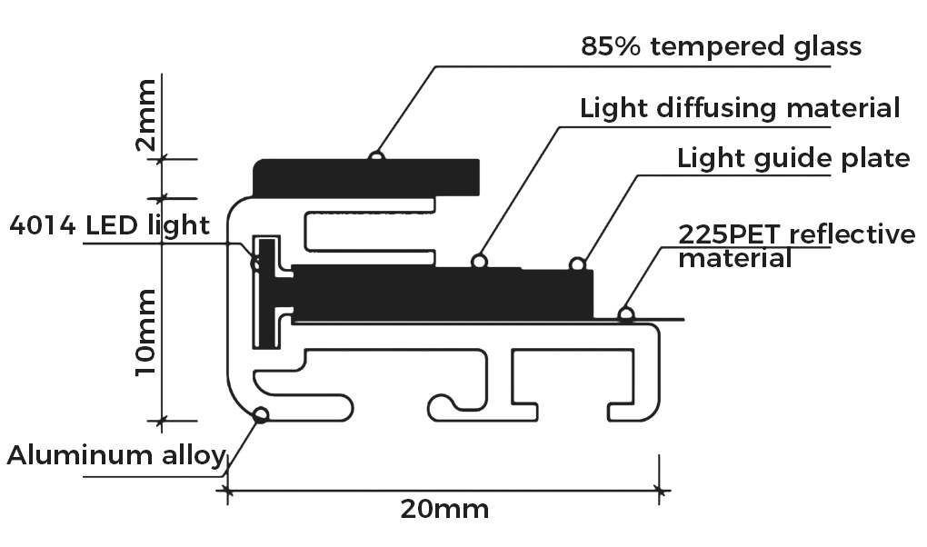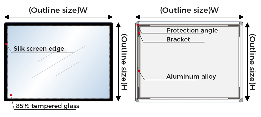 Material: Aluminium alloy frame + tempered glass.