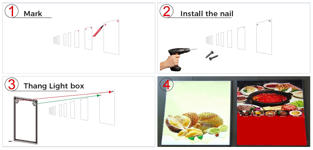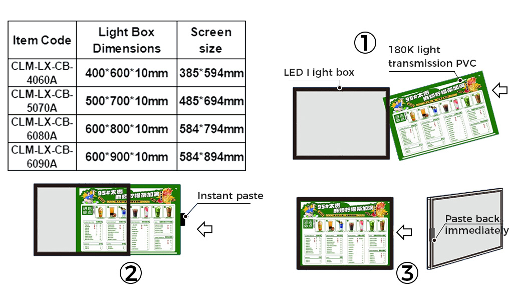 LED ultra-thin snap type aluminum alloy LED light box, luminous signboard bracket, wall-mounted advertising LED light box, LED backlit menu board screen, suitable for restaurants, cafes, stores,Hanging Billboard for Decoration, Exhibition, Advertisement