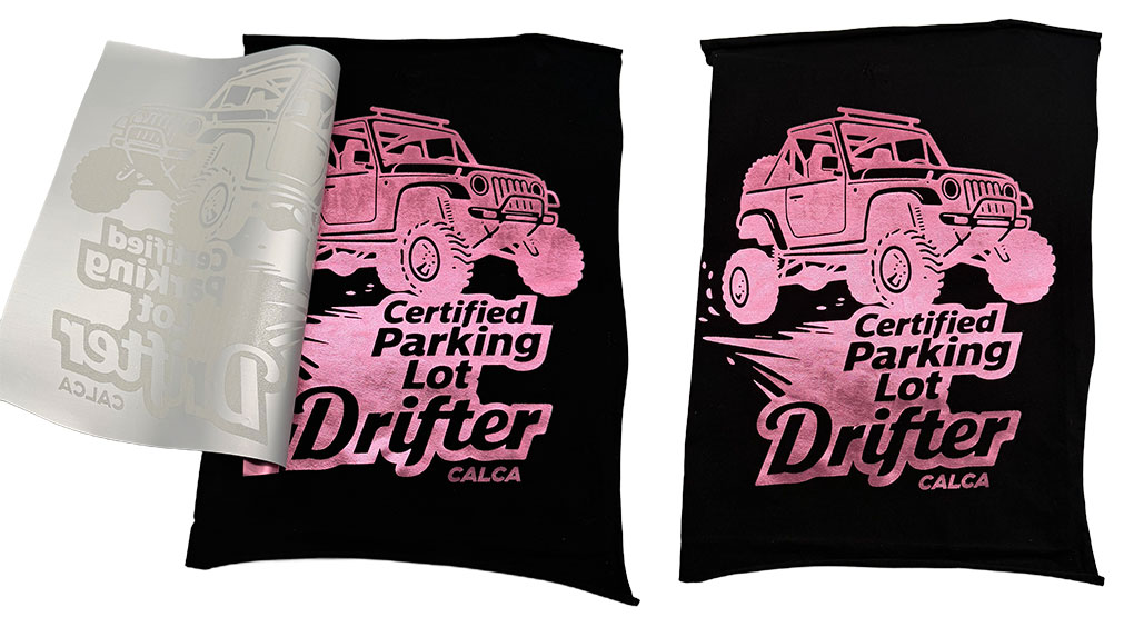 Impress and excite your customers by printing on CALCA DTF Violet Metallic Foils. Printing on our foil is easy and fun.