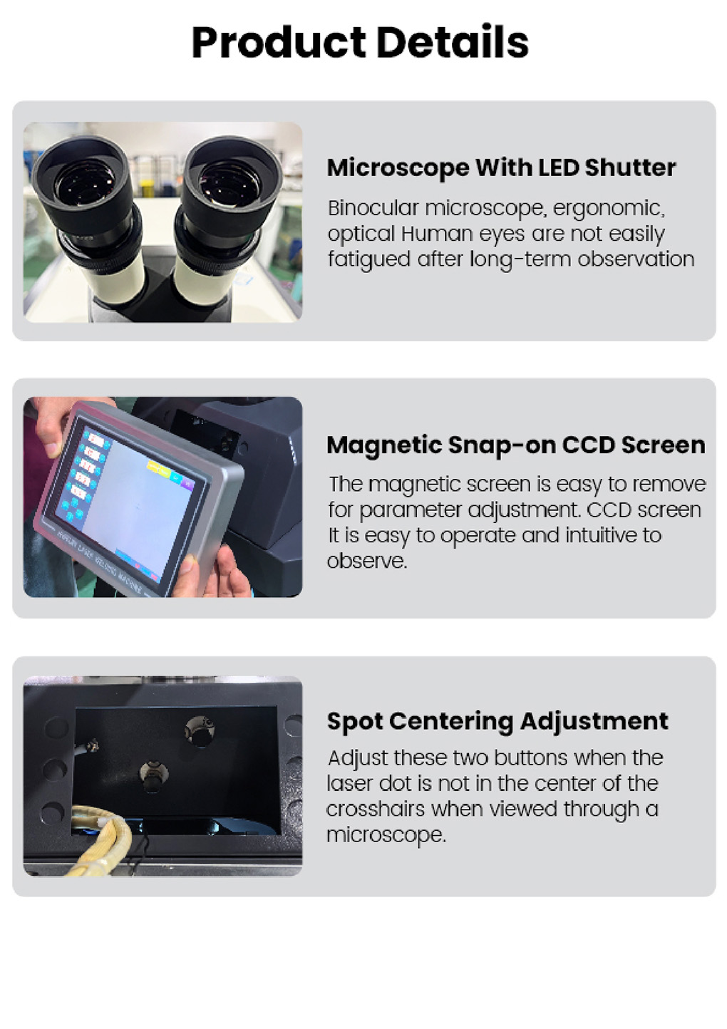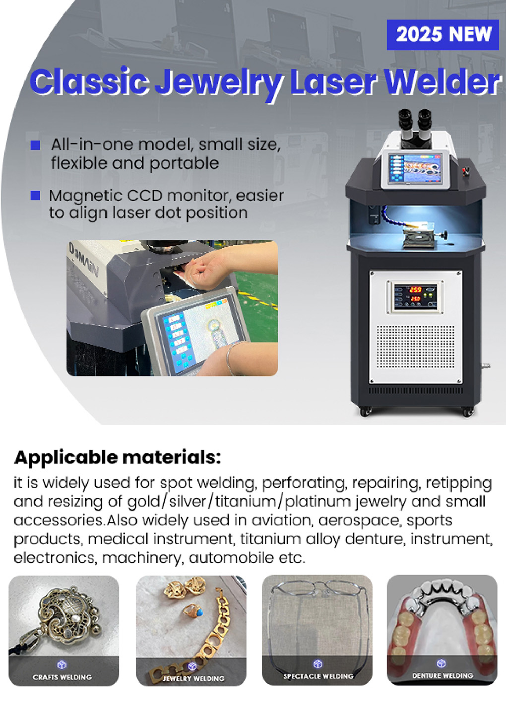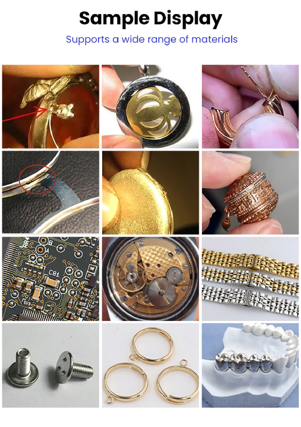 it is widely used for spot welding, perforating, repairing, retippingand resizing of gold/silver titanium /platinum jewelry and smallaccessories.Also widely used in aviation, aerospace, sportsproducts, medical instrument, titanium alloy denture, instrument.electronics,machinery, automobile etc.