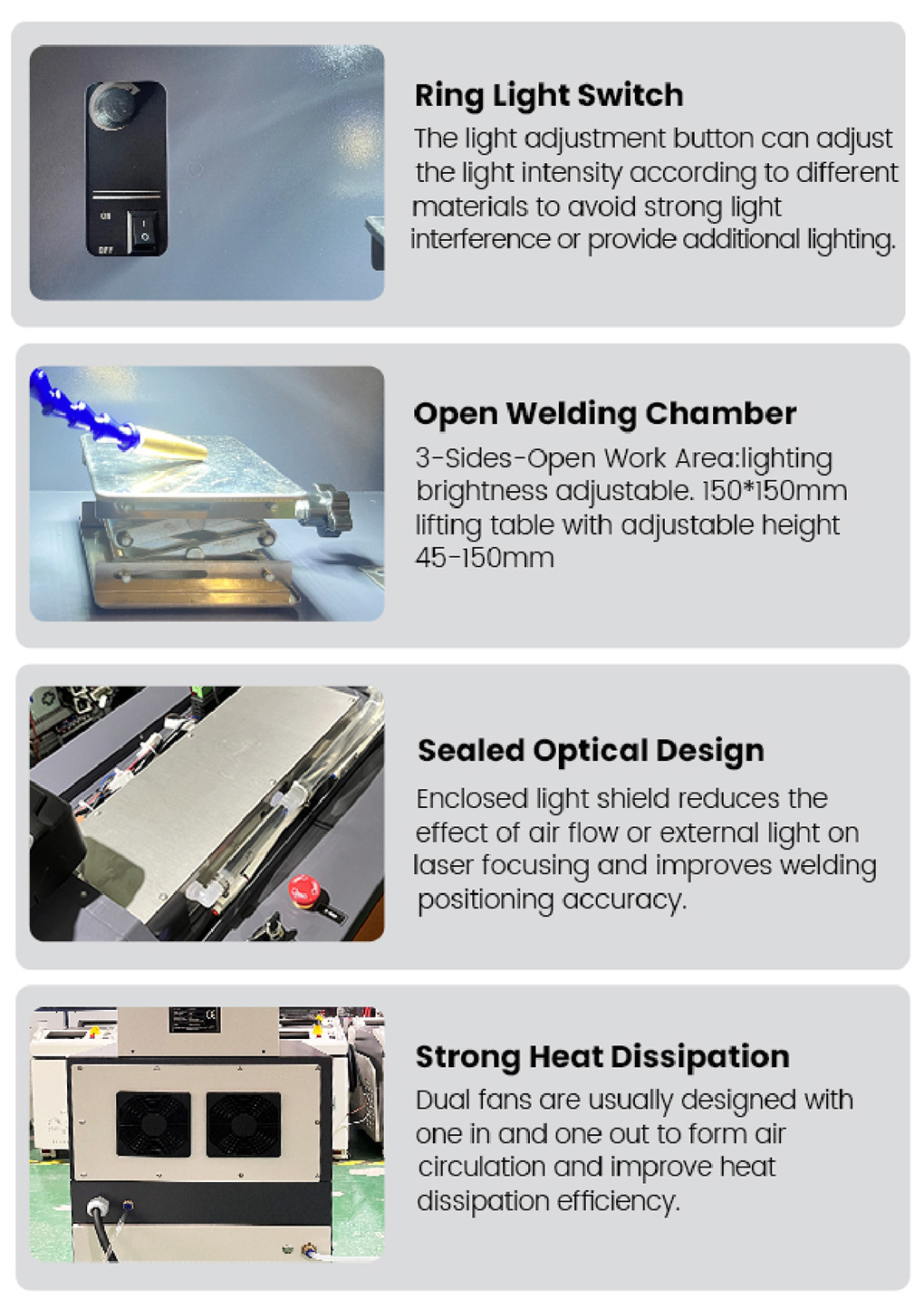 1.Energy, pulse width, frequency and focus can be adjusted within a wide range to achieve different welding effects