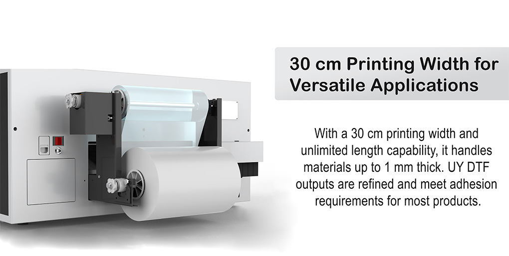 3. Printing width of 30CM, unlimited length. Printing thickness in 1mm, crystal DTF products are exquisite, meeting the adhesion needs of most products.